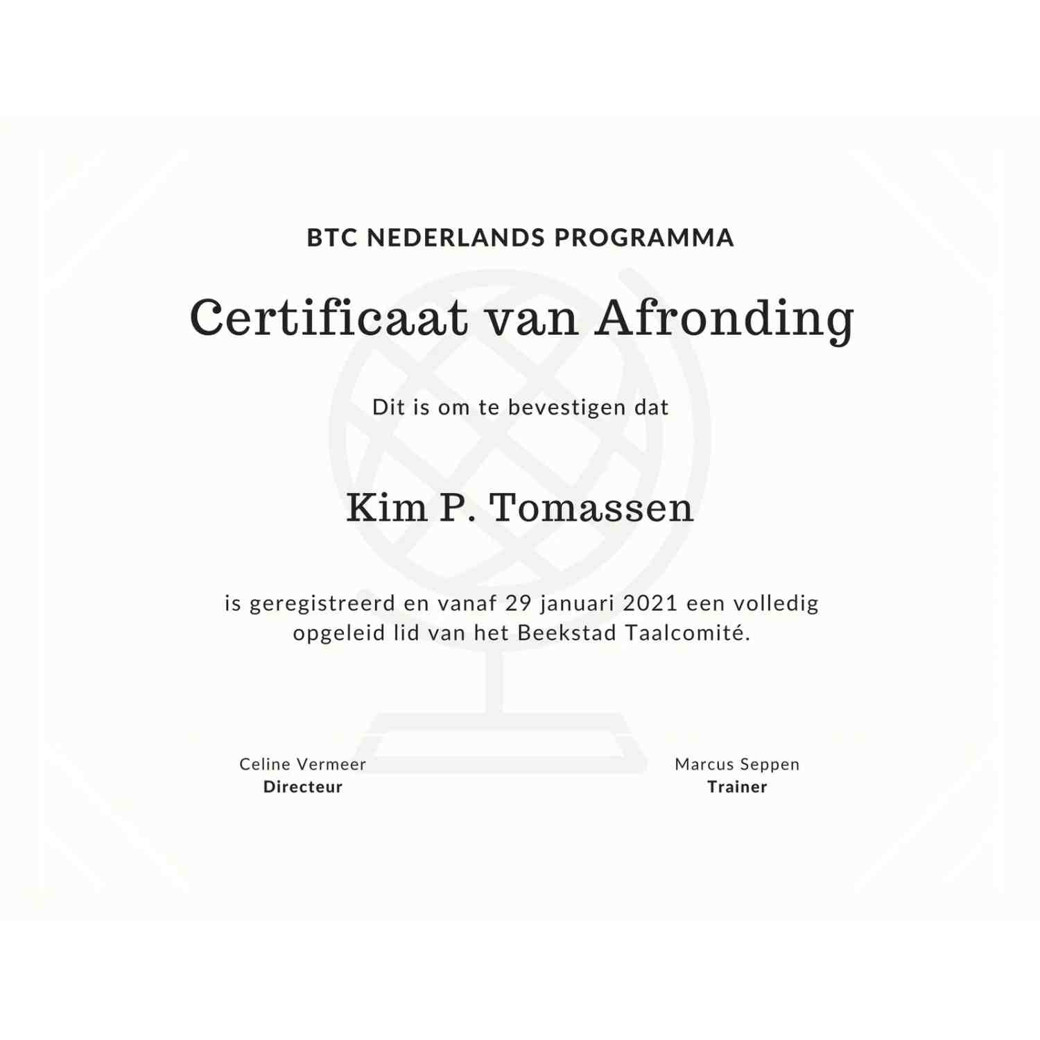OFFICIEEL CERTIFICAAT – VERTALING